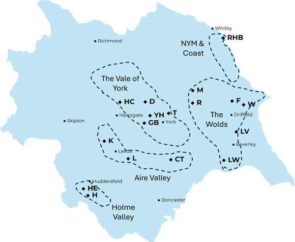 You will see that we have vineyards now in 5 distinct regions. created by the vales and hills of Yorkshire.